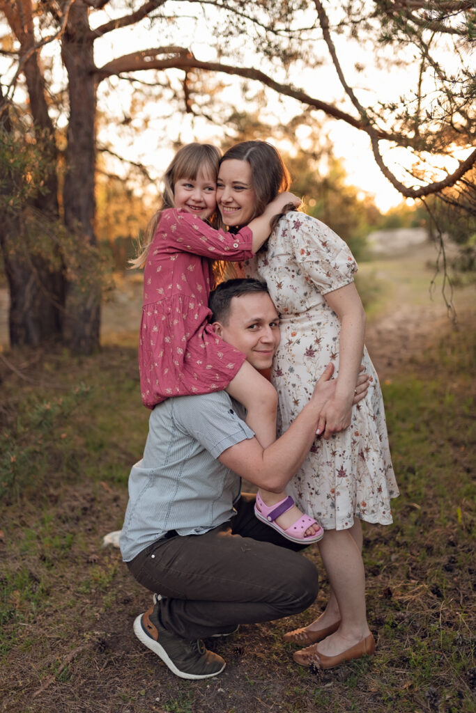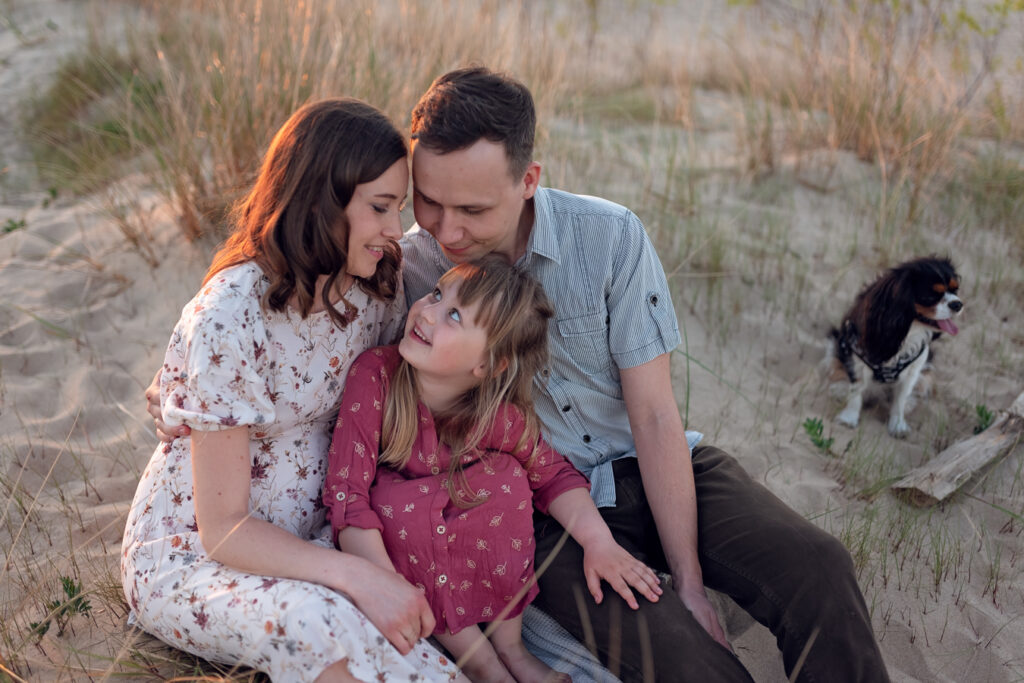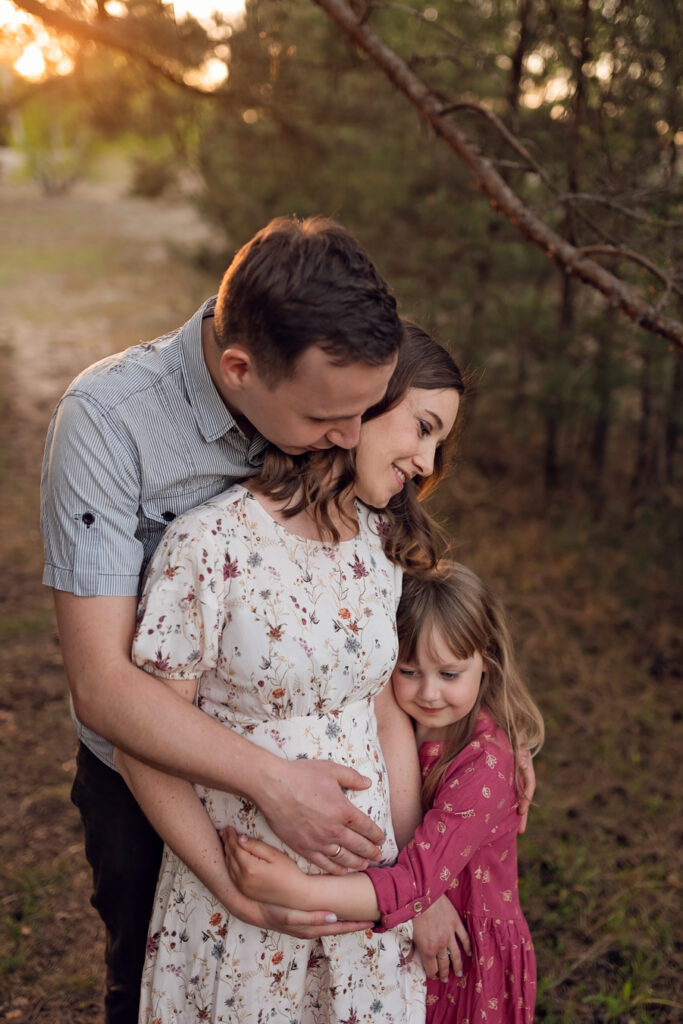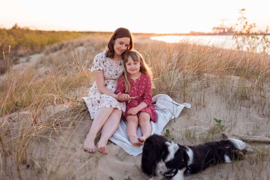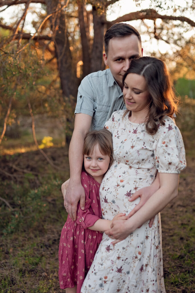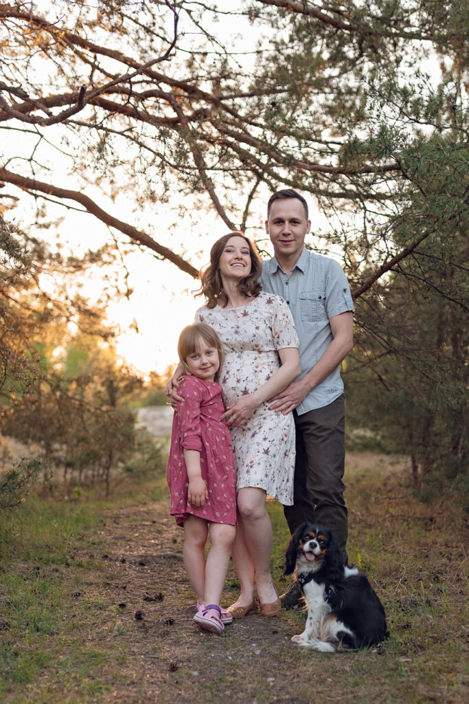 To jedna z moich ulubionych sesji, podczas której miałam okazję fotografować przyszłą mamę z 6-letnią córeczką i ukochanym psem. Sesja odbyła się wczesną wiosną, gdy natura budziła się do życia. Dzięki temu udało nam się stworzyć naprawdę magiczne zdjęcia, pełne ciepła i miłości.